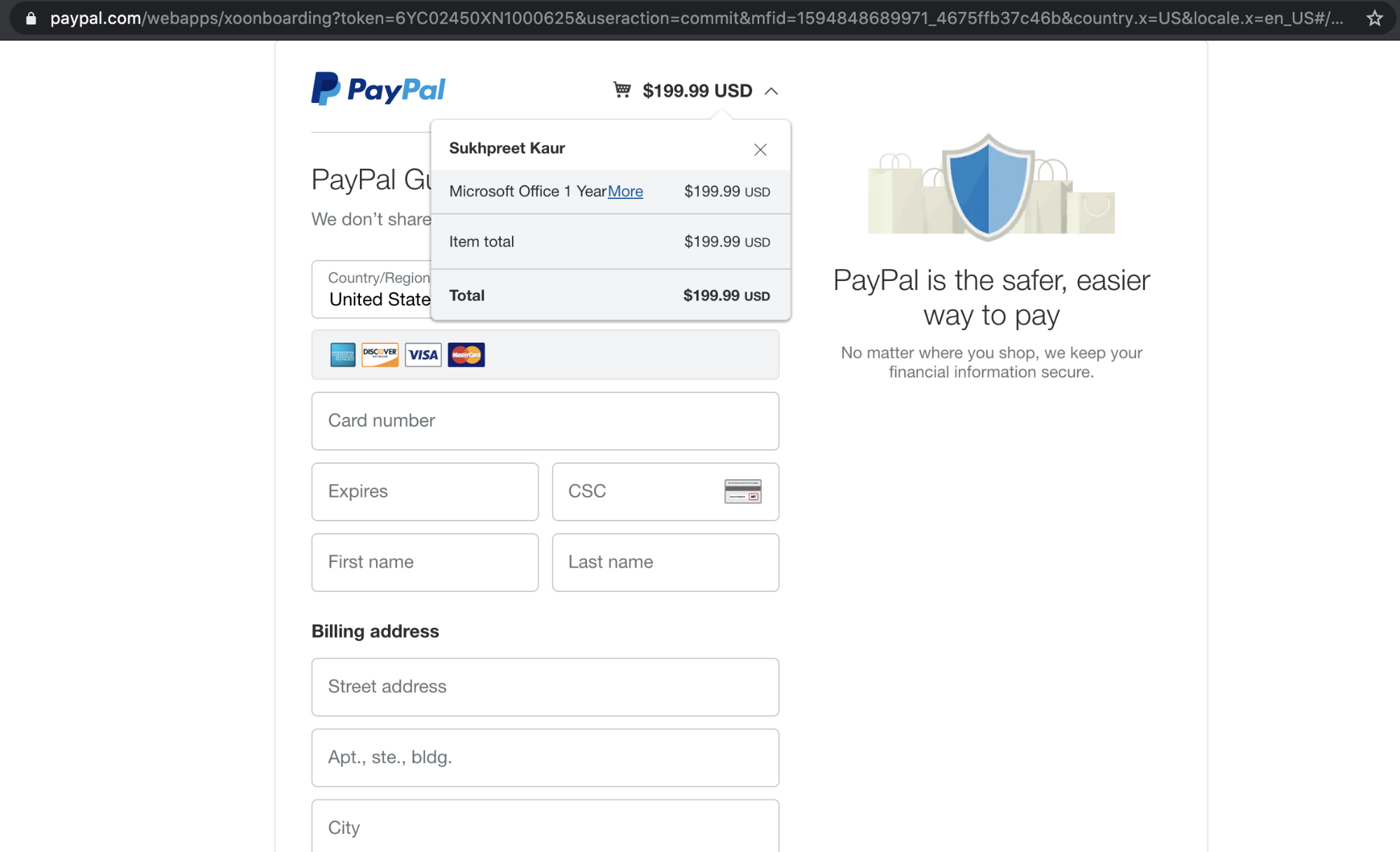 In the other attack, the email links to an authentic PayPal webpage. One might be convinced that this is a safe correspondence because of this real PayPal link. However, one thing to note is that there is no verification of what is being paid for. Though the details of the transaction note “Microsoft Office”, payment is made to an unknown individual, with no guaranteed transfer of goods.