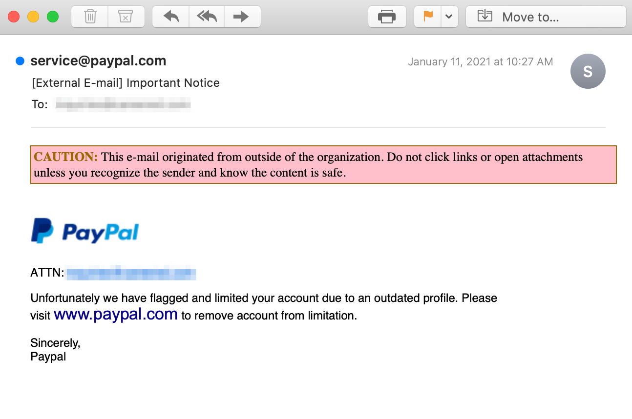 PayPal is a well-known money transfer application, used often between friends and family as well as for small businesses. Because PayPal accounts are often linked to credit cards and bank accounts, the company itself is a commonly impersonated brand from attackers hoping to steal that information from unsuspecting victims.