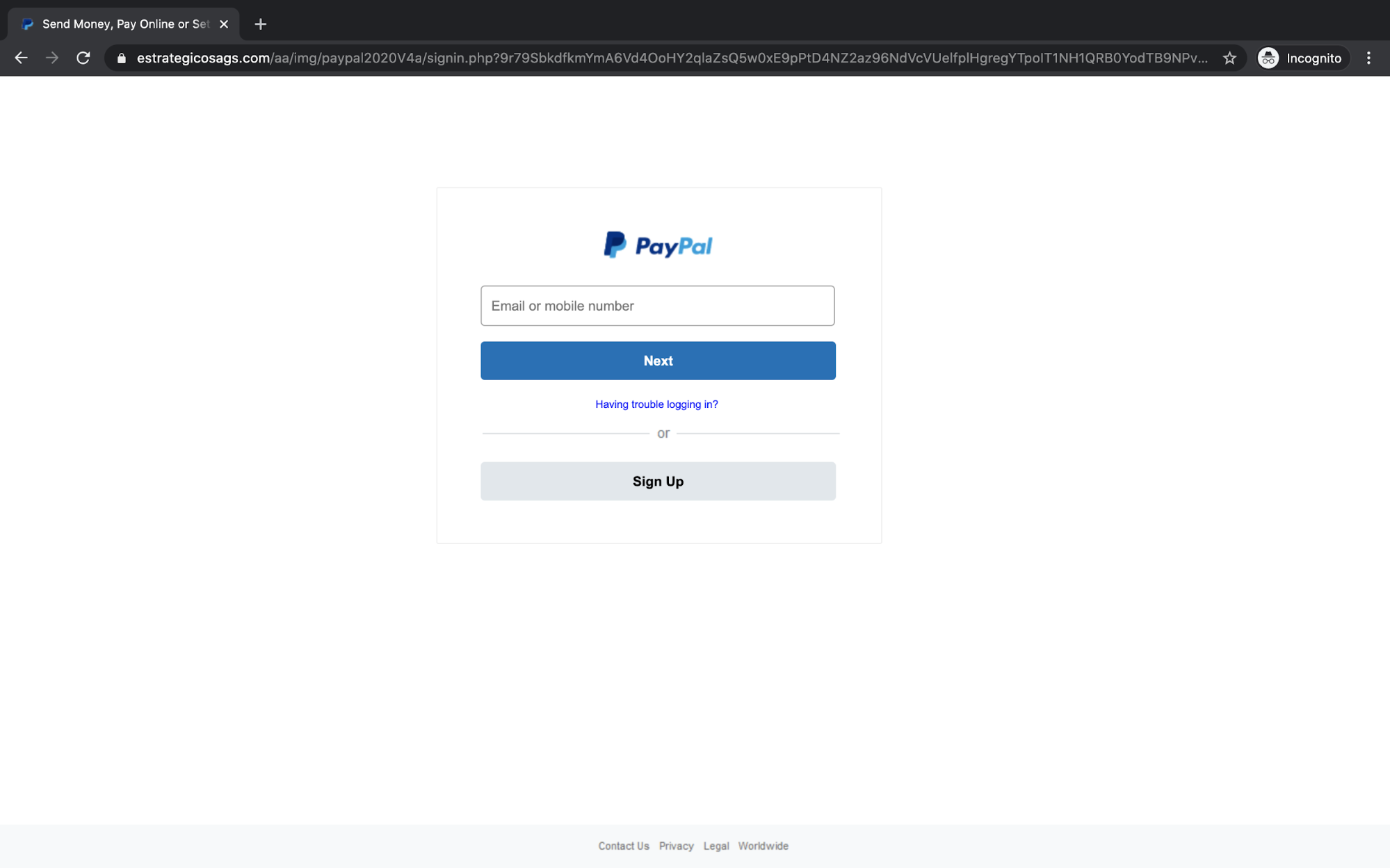 For the casual observer, it'd be difficult to notice that this is a phishing site, as the only true indicator is the suspicious URL. If the recipient does click on the concealed link and input their credentials into this fake PayPal page, the attacker will then gain access to their PayPal account and all of the sensitive, personal information inside. For those unlucky victims with money sitting in the account, the attacker would be able to transfer those funds to an account under their control, or use the banking and credit card details to make purchases.