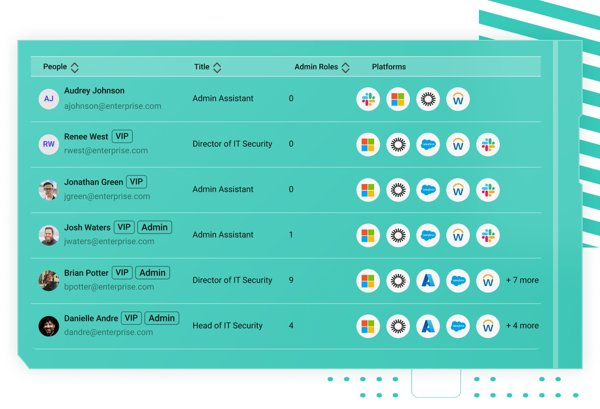 Gain visibility into cross-application privileges, derived insights from Abnormal AI, and a cross-platform identity timeline of notable events for every employee.