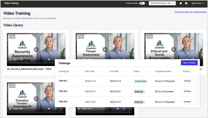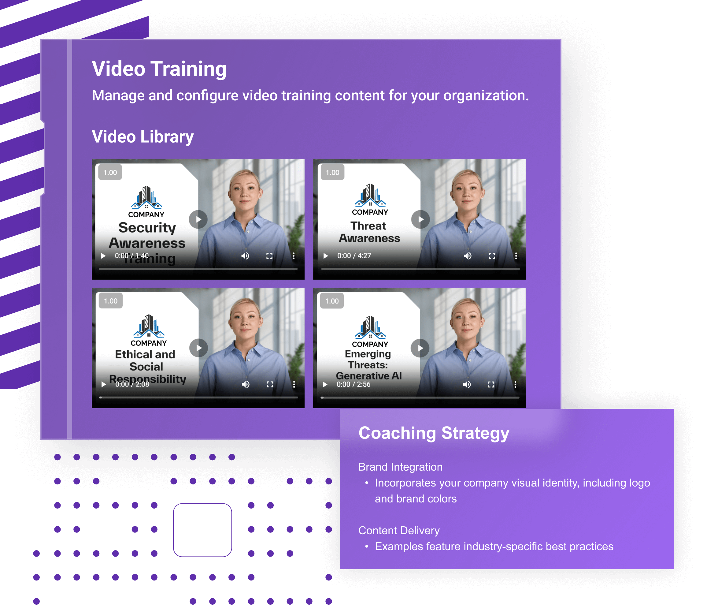Creates tailored, SCORM-compatible security awareness videos based on organizational understanding with zero manual effort required.