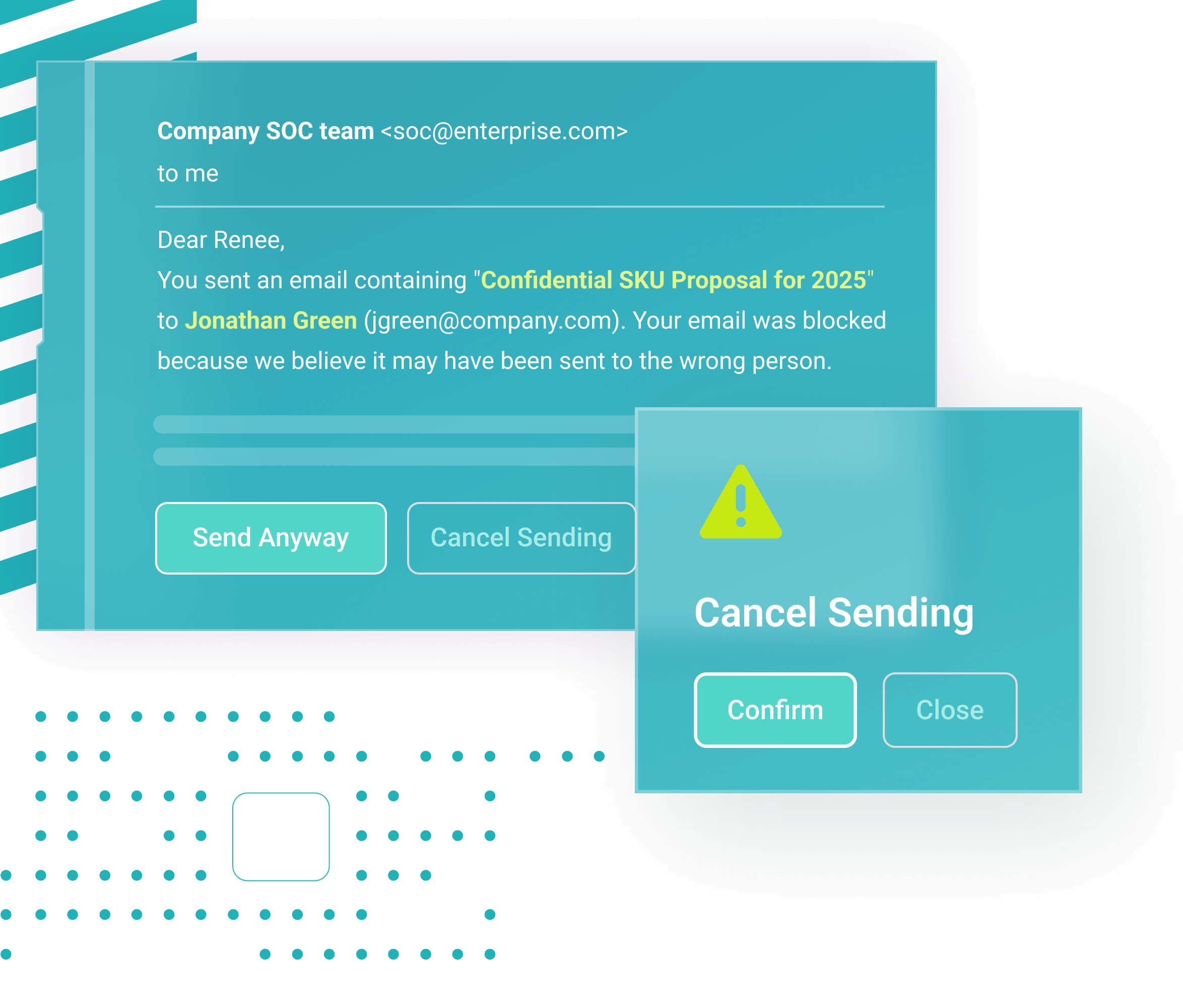 AI-powered analysis detects misdirected emails before they happen—without requiring rules or policies.