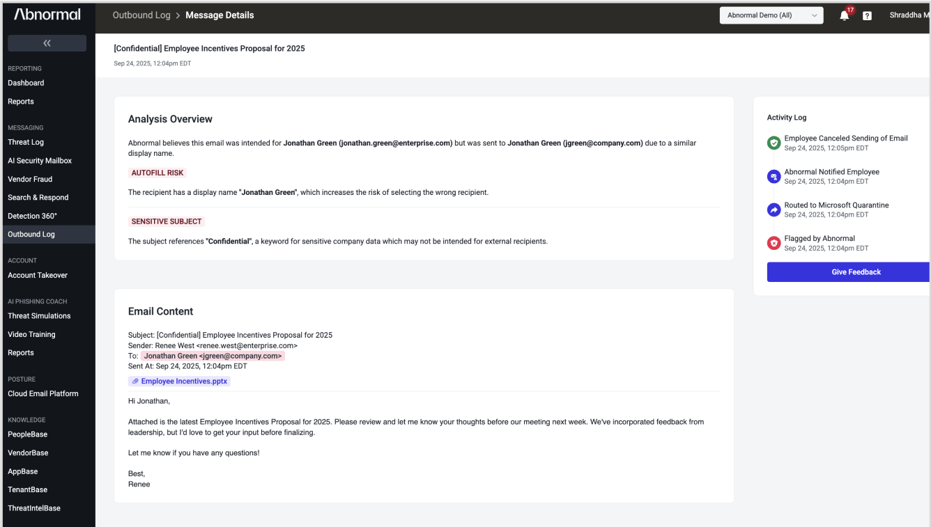 Identify email mistakes with behavioral AI that analyzes recipient context, communication patterns, and metadata—no policy tuning required.