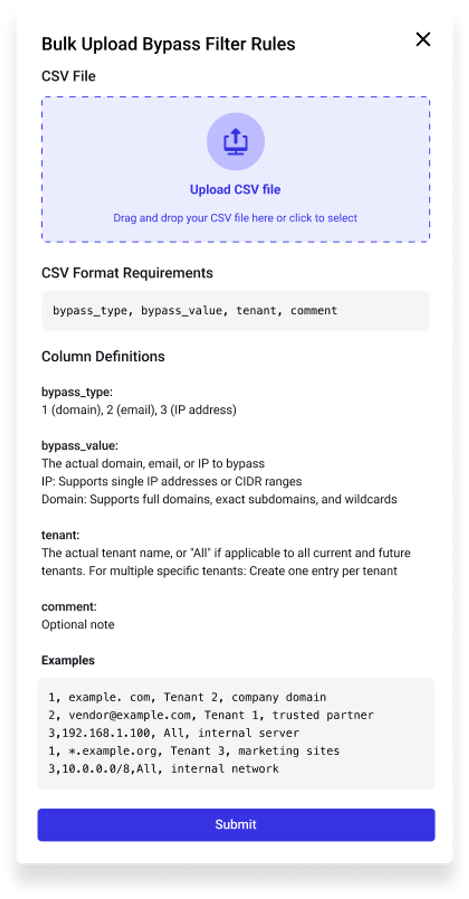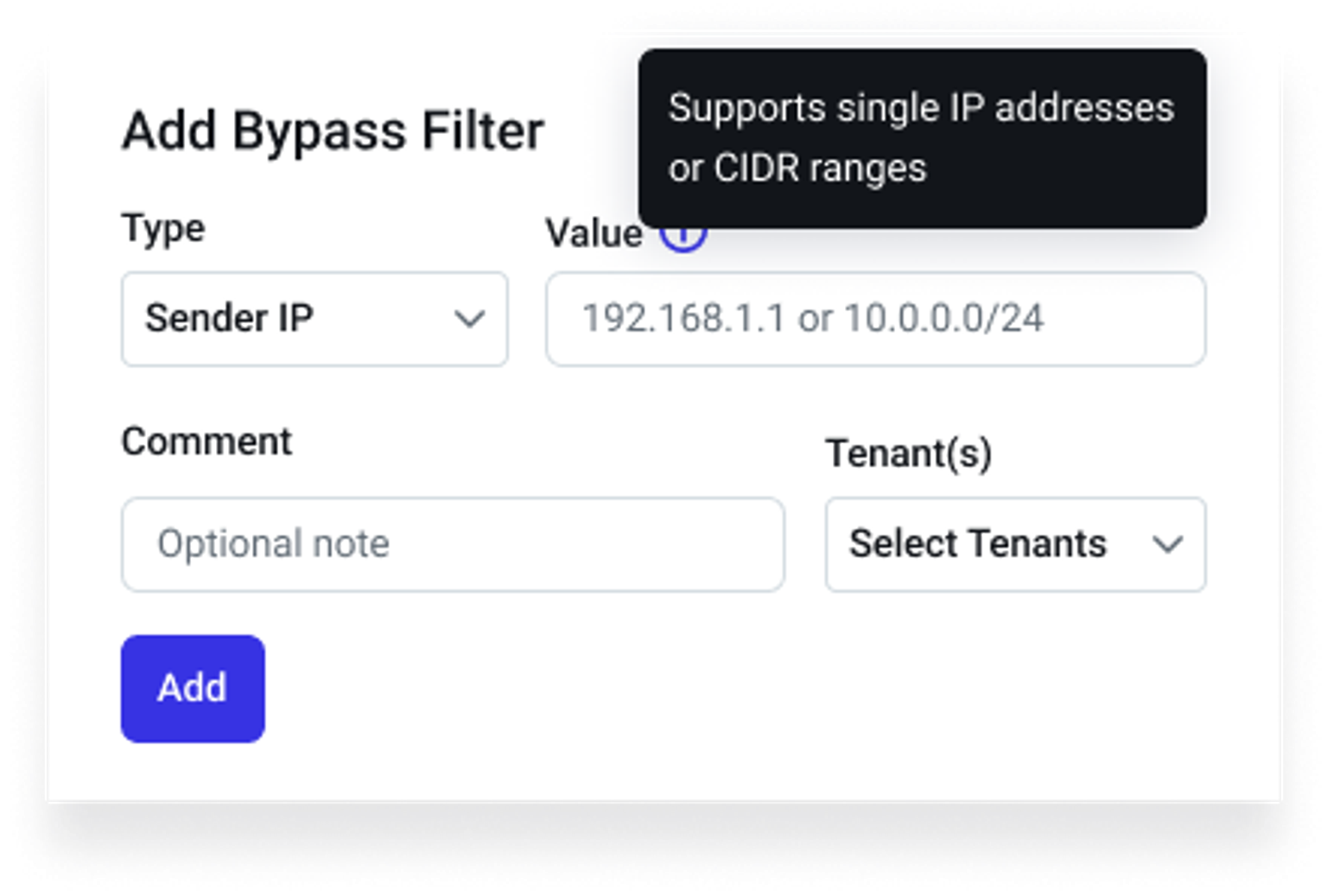 - CIDR IP ranges (e.g., 192.168.1.0/24)
