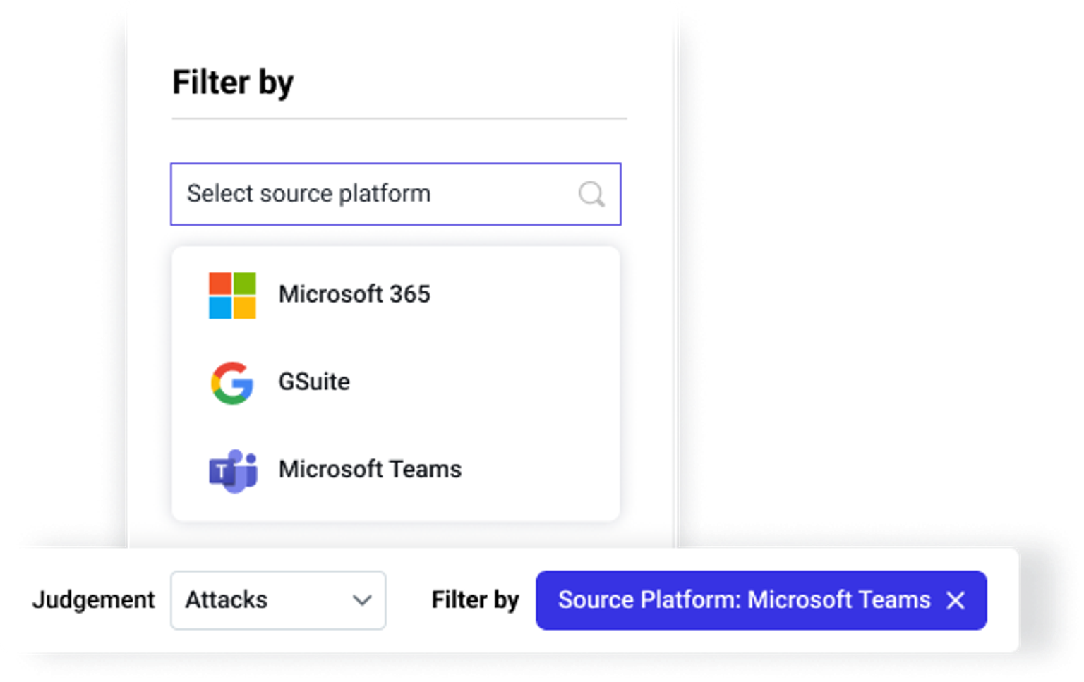 Use the new Source Platform filter to isolate Microsoft Teams detections in the Threat Log for faster triage and reporting.