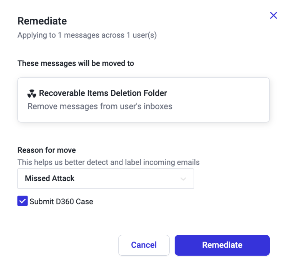 In the rare instance that Abnormal misses an attack, most customers use Search & Respond to remediate and mark that email as a miss. The typical next step was to submit a separate ticket to Detection360 to report a False Negative to train and enhance Abnormal’s AI models.