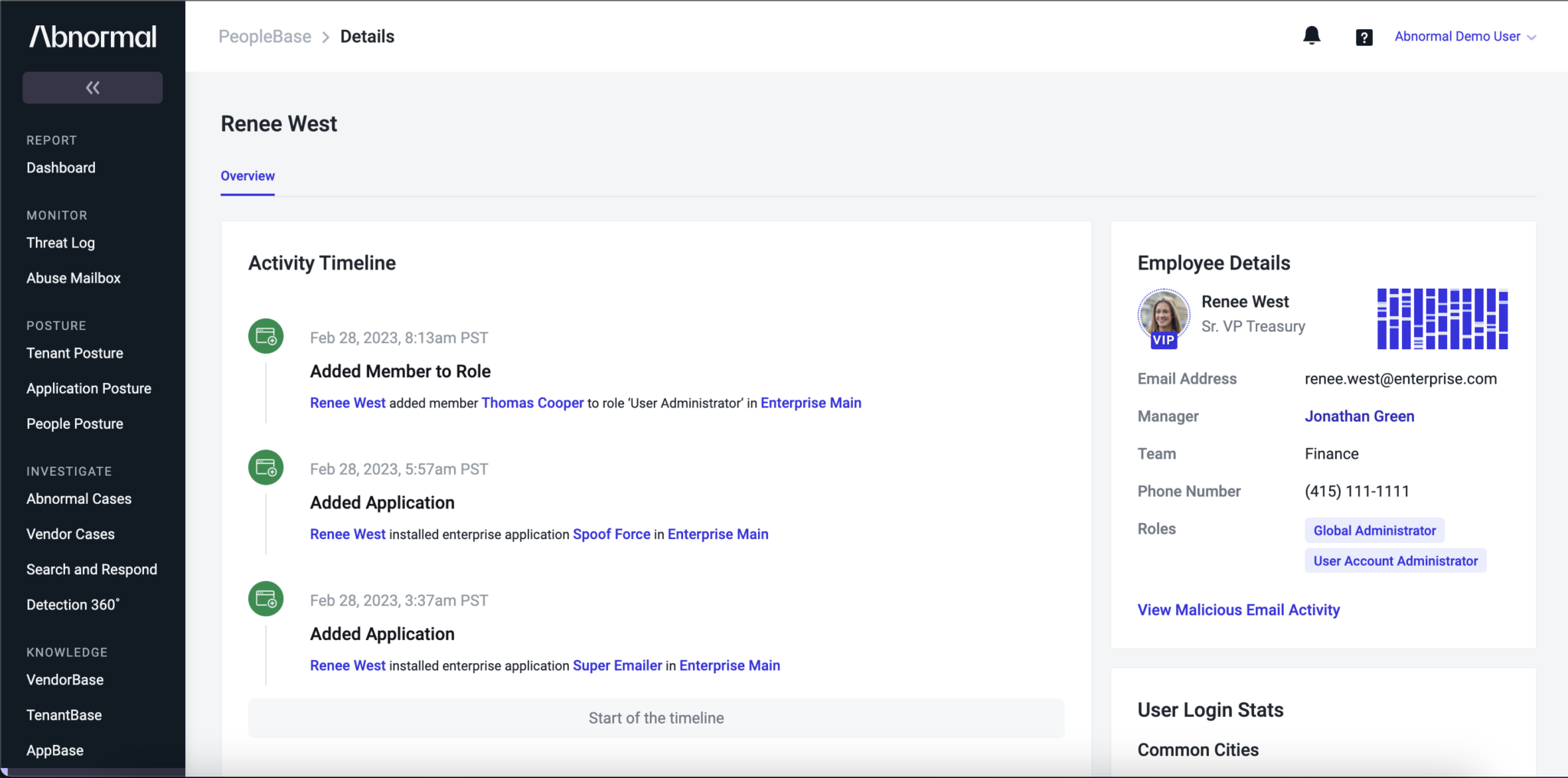 Similar to VendorBase, PeopleBase and TenantBase provide visibility into behavior and activities of entities within a cloud email environment. PeopleBase catalogs active users and builds dynamic profiles with behavioral data, as well as activity timelines of recent events. TenantBase provides an inventory of all email tenants within the environment and associated activities within them.