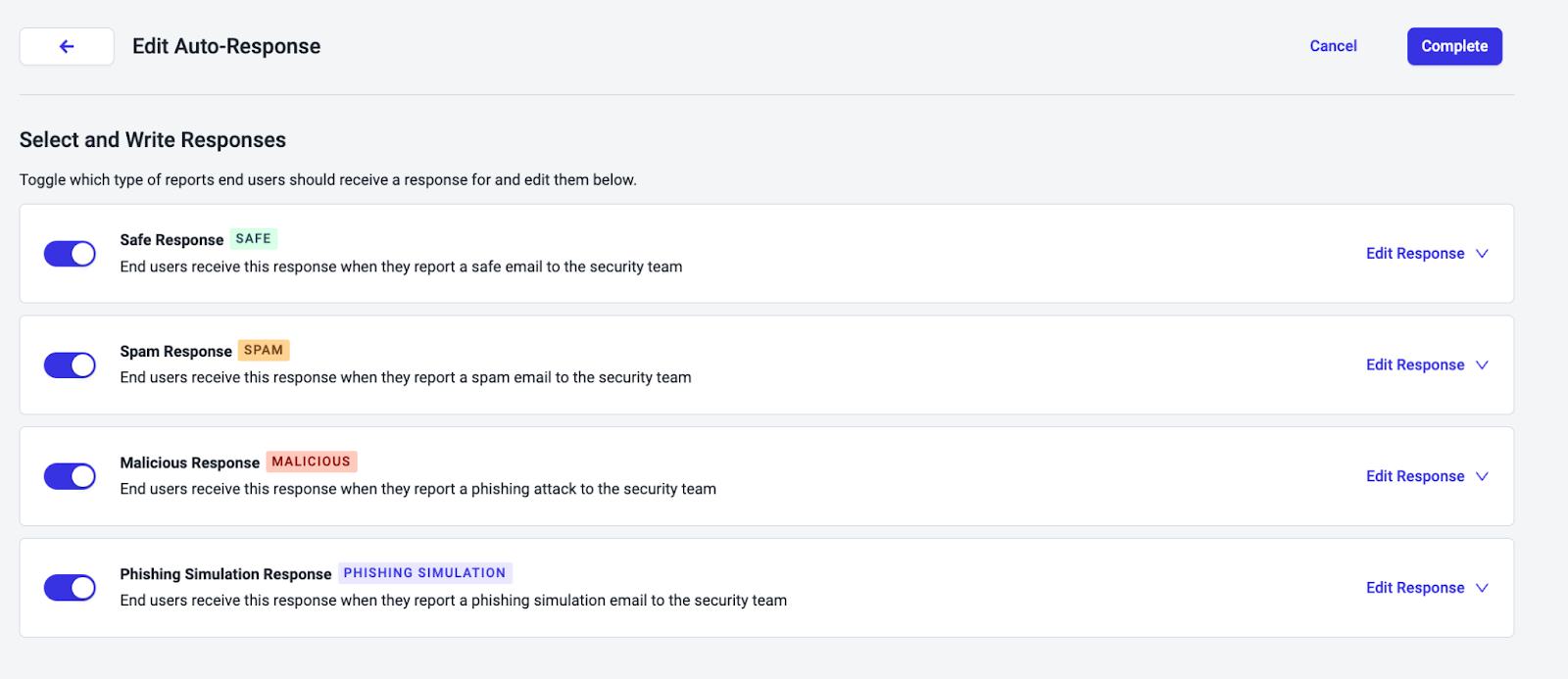Abuse Mailbox Automation (Now AI Security Mailbox) customers can now configure templated auto-response messages for user-reported phishing emails that Abnormal determines to be phishing simulations.