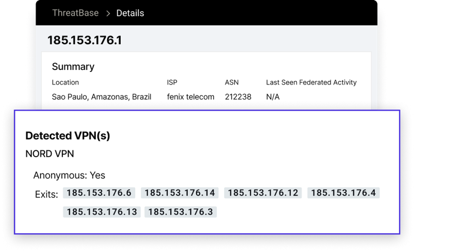 ThreatBase now provides additional context on VPN, proxy, and TOR usage when searching IP addresses.